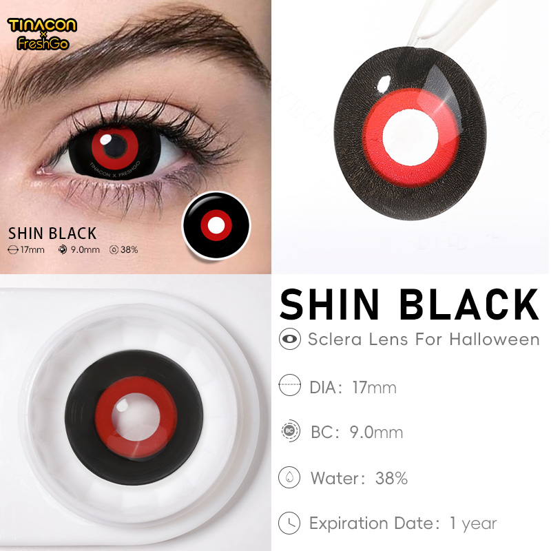 【TiNACON x Freshgo】Shin Black 17.0mm Enlarge Halloween Special Sclera Yearly Watery Soft Contact Lens Cosplay 2024 New Arrival